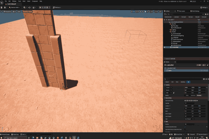 The core of the thesis was a functional, versatile, and useful PCG toolset. To achieve this, I created various Blueprints to enable the generation of manually drawn walls and cliffs, structures, and scatter.